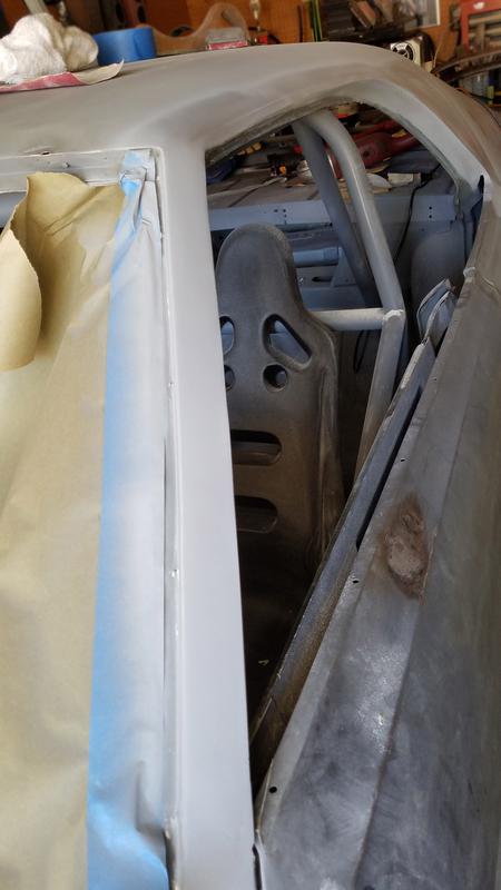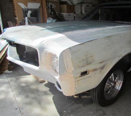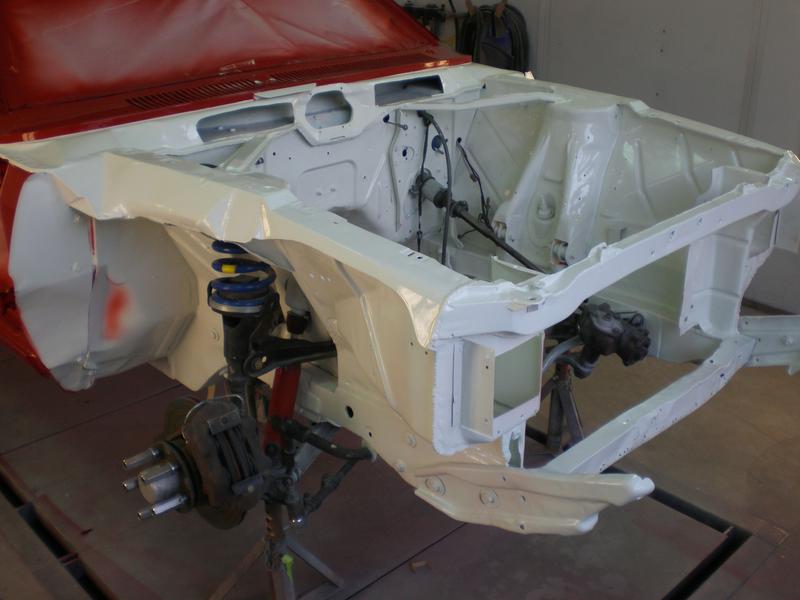 The complete car was stripped by use of electric wire brush, then etching primer and regular primer.