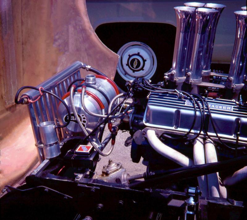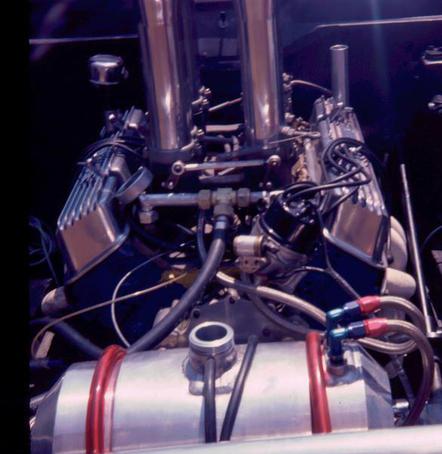 Through the years I wondered what had happened to the car after I sold it to Tex Cox in 1977. I reached out to Tex one day and asked him what he knew about the location of the car. He told me that he removed the running gear from it plus the hand built radiator, Elco aluminum fuel tank and drive shaft. He then sold those parts to Doug a friend of his who put them into a gold Javelin which he was going to run on the street. Doug found that it's not that easy to run mechanical fuel injection on the street. At one point shortly after he got it running the bolt that was driving the fuel injection pump started backing out of the cam shaft drive and pushed the fuel injector pump clean off the front of the motor. Thus, it went into the garage and sat there for the next 25 years.
